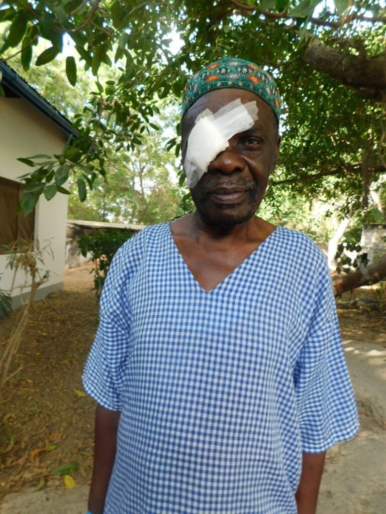 Tidligere hadde kona hans blitt behandlet for et hornhinnesår på Kwale Eye Centre. Til tross for de mange gangene hun tryglet ham om å søke medisinsk hjelp, ville ikke Juma ta imot råd. Det var vanskelig å få han til å skjønne alvoret, helt til han plutselig en dag kastet urtemedisinene og bestemte seg for å dra på en øyescreening. Han ble med engang booket inn for operasjon, som ble vellykket utført.