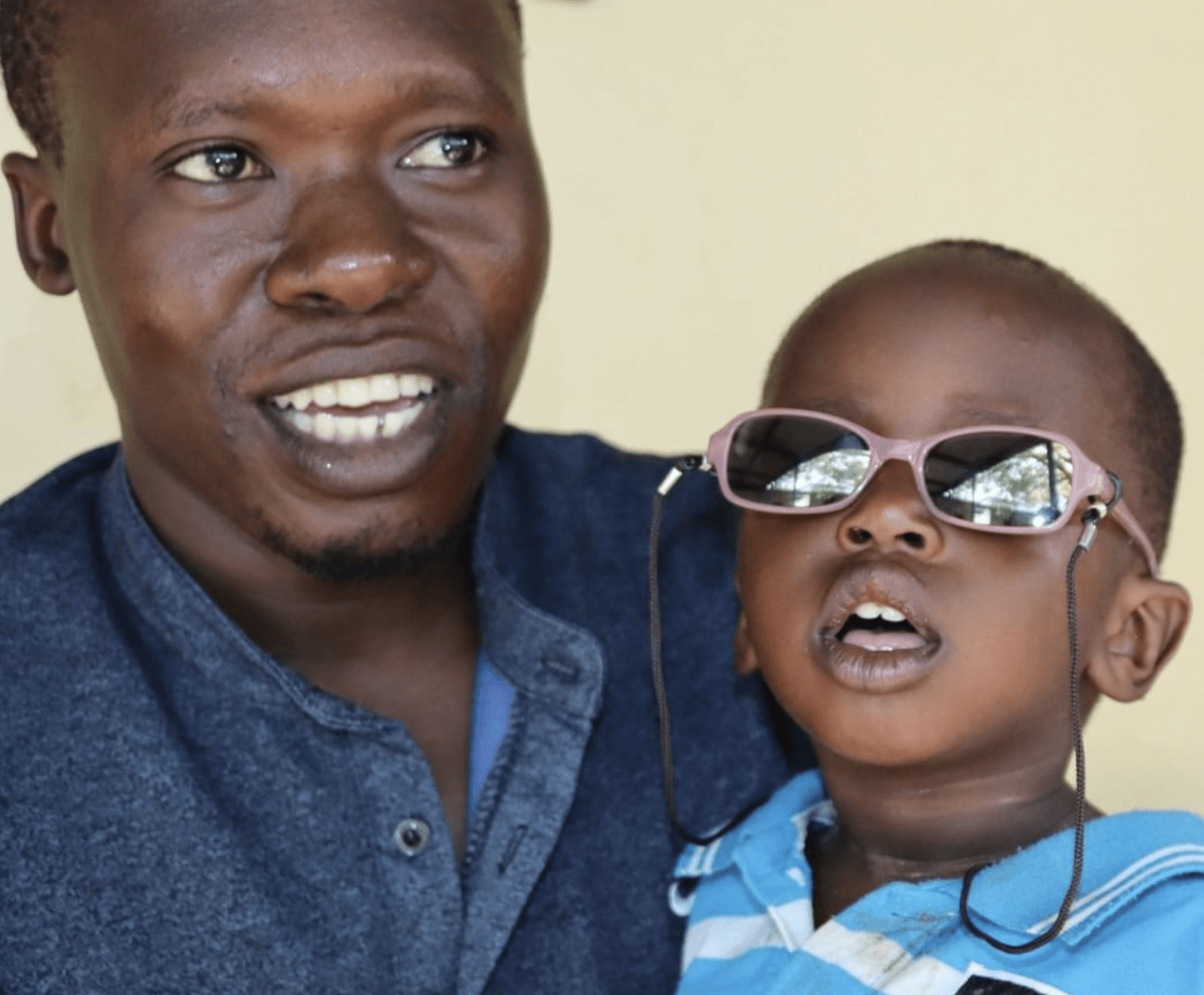I Kenya er barneblindhet et stort problem. Her ser vi Ali med hans sønn Rama etter at han ble operert for grå stær hos vår samarbeidene øyeklinikk Kwale Eye Centre.